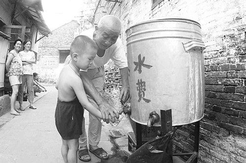 退休工人祝正祥連忙端來一大碗茶水,