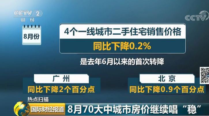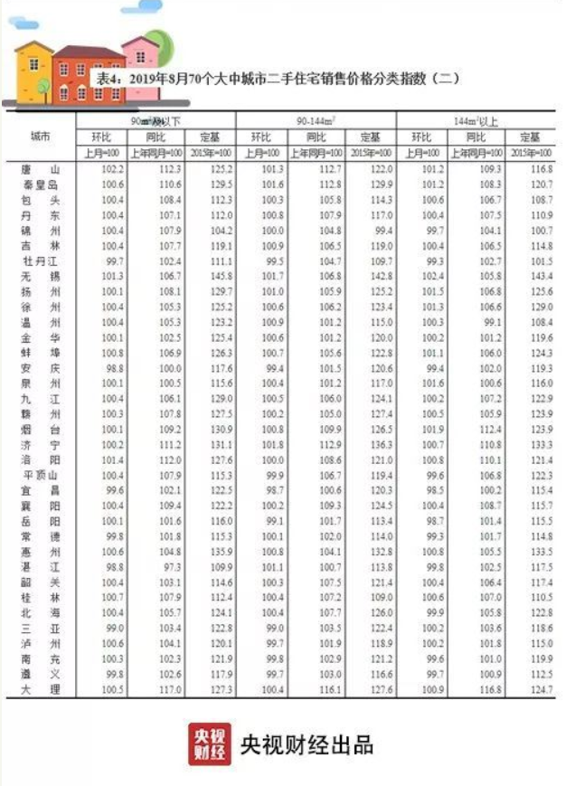 央視財(cái)經(jīng)2019年9月18日訊 近日,國家統(tǒng)計(jì)局發(fā)布了8月份70個(gè)大中城市商品住宅銷售價(jià)格變動情況:一二線城市新建商品住宅和二手住宅銷售價(jià)格環(huán)比、同比漲幅均與上月相同或回落;三線城市新建商品住宅銷售價(jià)格環(huán)比漲幅與上月相同,二手住宅漲幅微升。