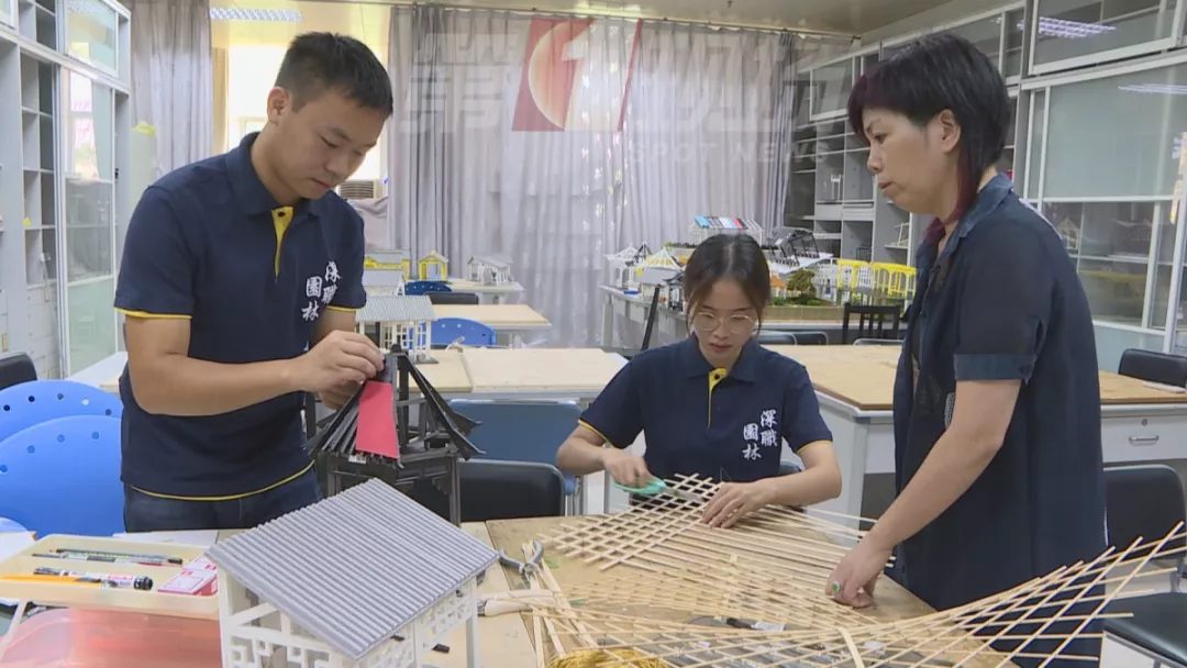 20號中午,在深圳職業(yè)技術學院的培訓室,謝老師正在指導學生制作園林建筑的模型。這門技術不僅需要手巧,還要有藝術上的靈感和創(chuàng)意。