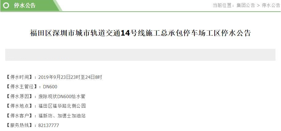 見圳客戶端?深圳新聞網(wǎng)2019年9月22日訊 近日,深圳水務集團官網(wǎng)陸續(xù)發(fā)布停水公告。深圳新聞網(wǎng)記者了解到,9月23-24日,福田、南山、羅湖等區(qū)的多個小區(qū)和企業(yè)單位將受影響,請市民提前做好儲水準備。