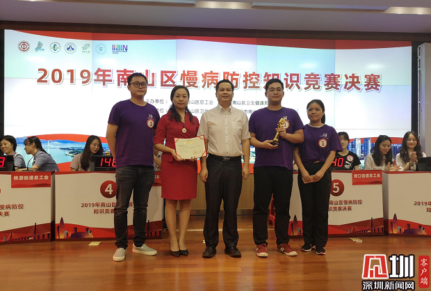 見(jiàn)圳客戶端·深圳新聞網(wǎng)2019年9月23日訊(見(jiàn)圳客戶端、深圳新聞網(wǎng)記者 劉夢(mèng)婷 通訊員 張媞)日前,一場(chǎng)“非專業(yè)”健康知識(shí)競(jìng)賽進(jìn)入決賽,參賽8支隊(duì)伍均來(lái)自非醫(yī)療衛(wèi)生專業(yè)人群。經(jīng)過(guò)激烈角逐,2019年南山區(qū)慢病防控知識(shí)競(jìng)賽圓滿落幕,西麗街道總工會(huì)代表隊(duì)奪冠。
