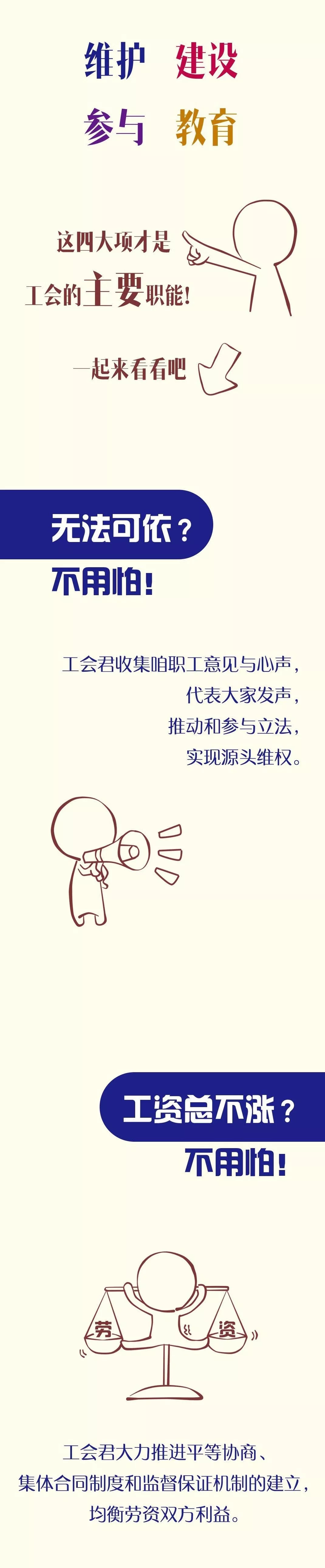 深圳市總工會堅(jiān)持中國共產(chǎn)黨的領(lǐng)導(dǎo),堅(jiān)定不移地走中國特色社會主義工會發(fā)展道路。簡單來說,主要有維護(hù)、建設(shè)、參與、教育四大職能。維護(hù)職工朋友的合法權(quán)益、組織勞動競賽、幫助職工小伙伴提高科學(xué)文化素質(zhì)等等,職工朋友的維權(quán)、服務(wù)、教育、幫扶......都是工會的職能。