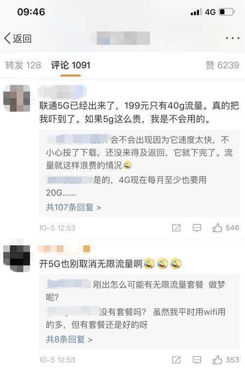 也有很多用戶在觀望中,"等你們用個(gè)幾個(gè)月5G,告訴我費(fèi)用,我再看看是不是要跟你們一起混。"