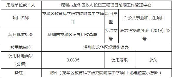 公示內容顯示,龍華區(qū)教育科學研究院附屬中學擬使用林地面積0.0695公頃。