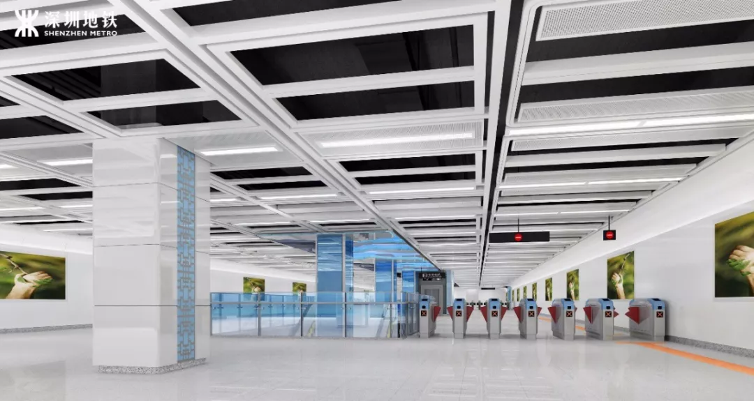 同樣綜合考慮前海地下漫行系統(tǒng),只在樓梯口部重點設(shè)計,表現(xiàn)前海特色,使之成為視覺焦點,突出垂直交通樞紐,風(fēng)格和諧統(tǒng)一。