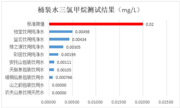 12款桶裝水污染物安全測(cè)試均符合標(biāo)準(zhǔn)要求。其中,耗氧量方面,所有飲用純凈桶裝水和其它飲用桶裝水耗氧量均符合標(biāo)準(zhǔn)要求,安托山、彩田、天脈泉和梧桐仙泉包裝飲用水受有機(jī)污染更少;所有飲用純凈桶裝水和其它飲用桶裝水三氯甲烷符合標(biāo)準(zhǔn)要求,農(nóng)夫山泉飲用天然水和山之韻包裝飲用水未檢出,表現(xiàn)更好。