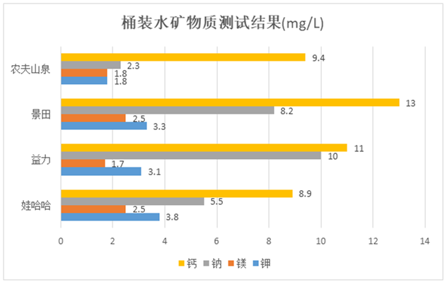 3款飲用天然礦泉水和1款飲用天然水中的礦物質(zhì)鉀、鈣、鈉、鎂是人體所需元素,均符合國家標準及產(chǎn)品標簽明示指標的要求,分別是農(nóng)夫山泉、景田、益力和娃哈哈。