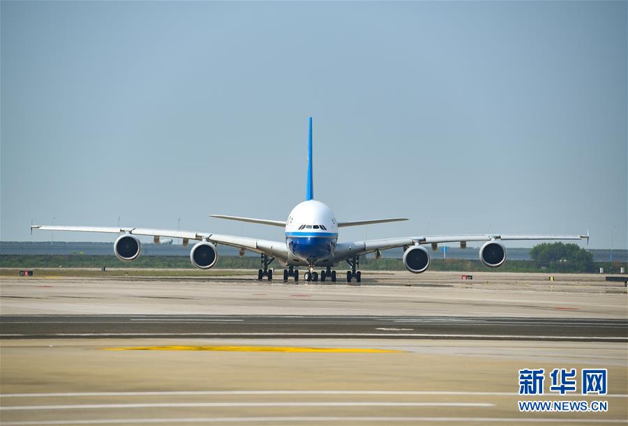 10月27日,南方航空空中客車A380客機(jī)抵達(dá)深圳機(jī)場(chǎng)。當(dāng)日下午,由全球最大寬體客機(jī)——空中客車A380執(zhí)飛的南航CZ3153次航班由深圳起飛前往北京,標(biāo)志著這款“空中巨無(wú)霸”機(jī)型重返深圳機(jī)場(chǎng)。南航曾在2014年5月開始啟用A380執(zhí)飛京深航線,后因動(dòng)態(tài)運(yùn)力調(diào)配停飛。新華社記者毛思倩攝