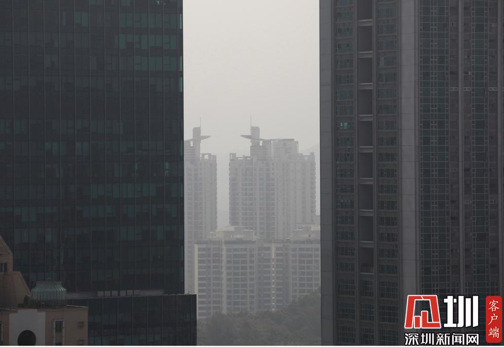 早上9點(diǎn)到10點(diǎn),福田區(qū)上空呈現(xiàn)灰色。
