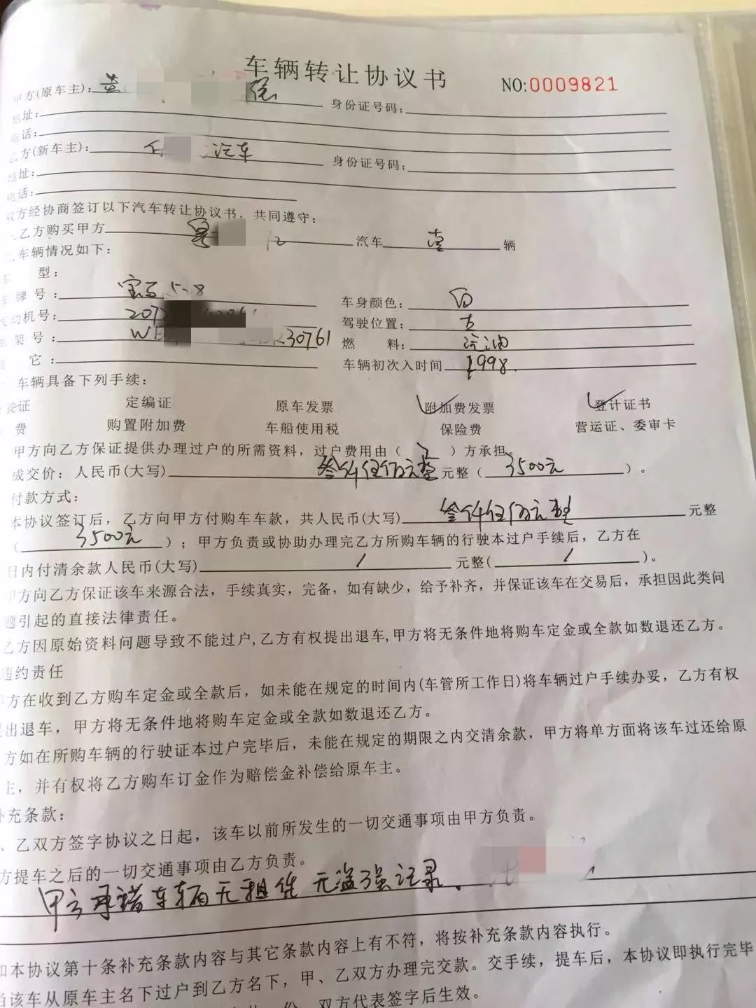 (現(xiàn)場(chǎng)發(fā)現(xiàn)的車輛轉(zhuǎn)讓協(xié)議書)