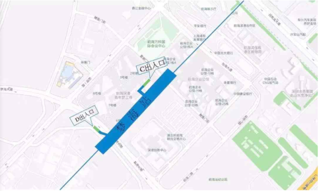 夢(mèng)海站位于前海深港現(xiàn)代服務(wù)業(yè)合作區(qū)夢(mèng)海大道(原振海路)與規(guī)劃支路交叉口下方,出入口共計(jì)2個(gè),C出入口位于鯉魚門九街北側(cè),靠近青年夢(mèng)工廠,D出入口位于夢(mèng)海大道西側(cè)