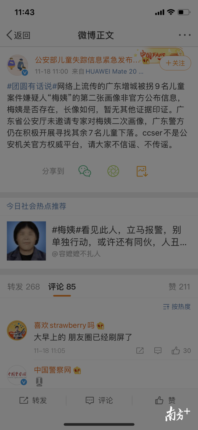 南方網(wǎng)2019年11月18日訊 日前,網(wǎng)上流傳的人販子“梅姨”的消息,公安部相關(guān)部門剛剛通過官方微博做了最新回復(fù)。