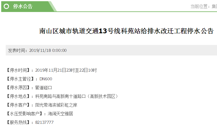 停水時間:11月21日8時30分至18時