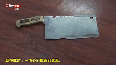 一把明晃晃的菜刀剛好砍進(jìn)車門縫里。