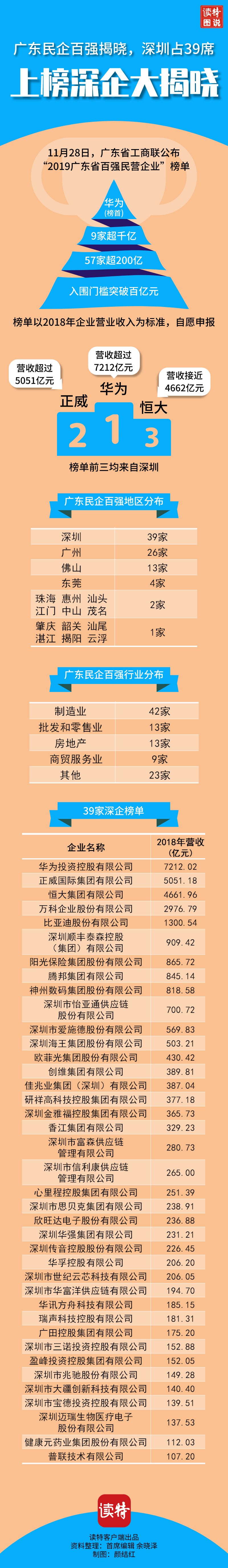 一圖讀懂|2019廣東省民企百強揭曉,深圳占39席!