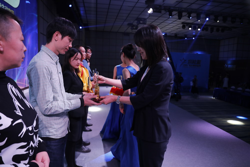 深新傳媒董秘王薇為“旅游行業(yè)最受網(wǎng)民歡迎品牌”頒獎(jiǎng)。