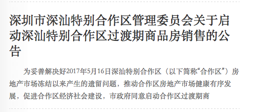12月2日關(guān)于啟動(dòng)深汕特別合作區(qū)過(guò)渡期商品房銷售的公告發(fā)布