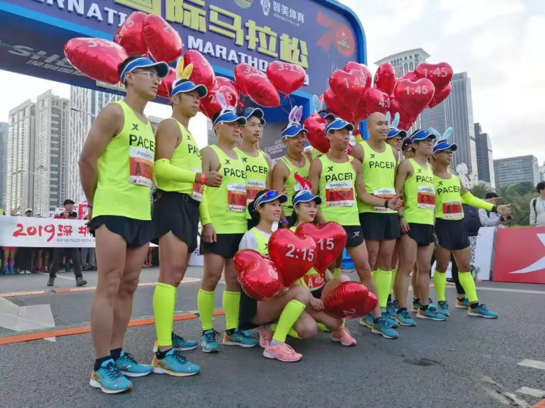 ▲身上系著紅色氣球的配速員賽前合影。