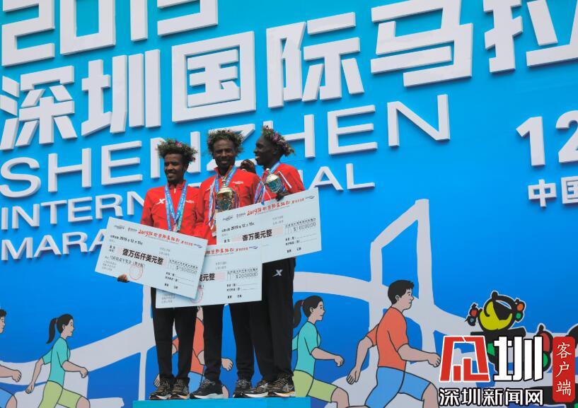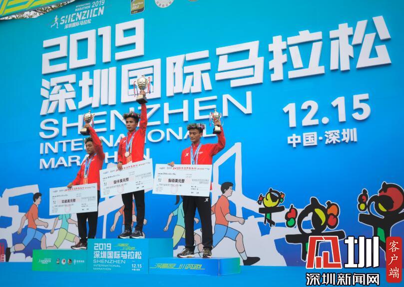 全程男子冠軍Tadese Tola Woldegeberel和第二名獲獎?wù)邠肀А?/p>