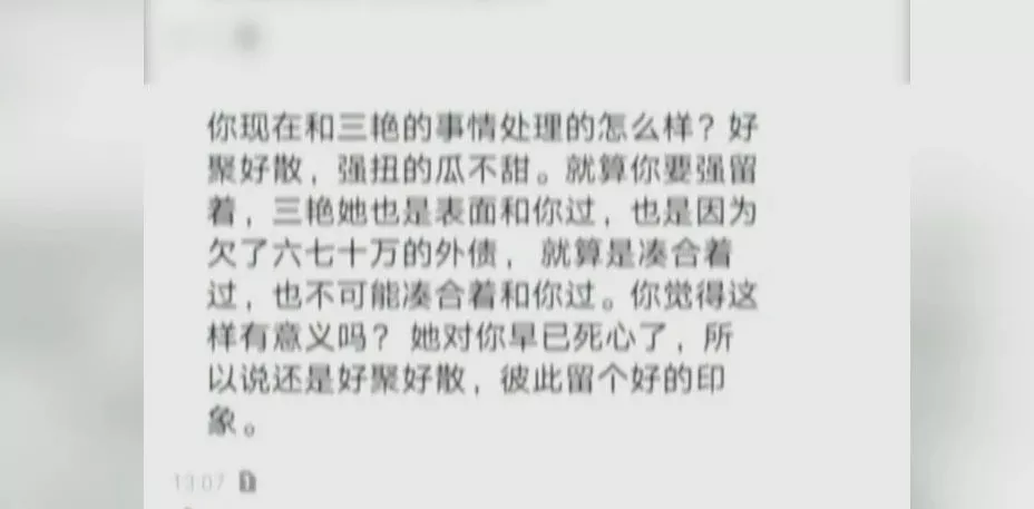 “這個陌生男的就說,讓我該離婚就離,說她的心已經(jīng)不在我這里了,強扭的瓜不甜什么的。”