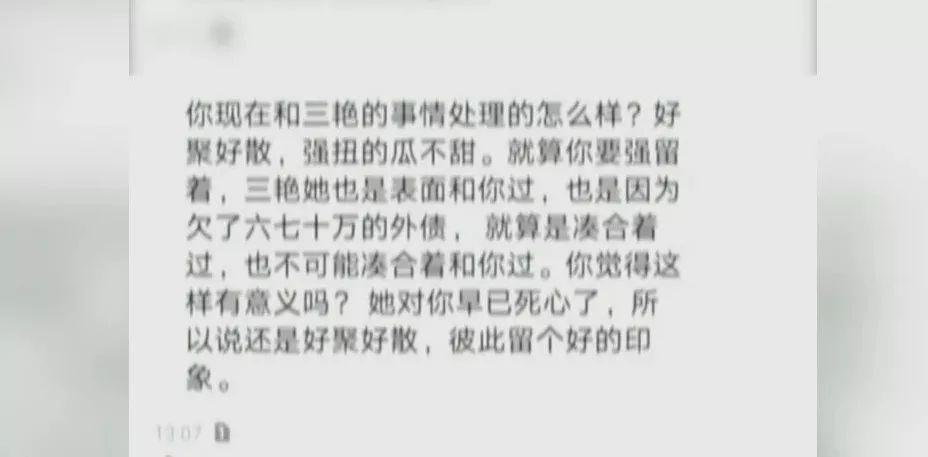 譚先生懷疑妻子被傳銷,苦心勸說(shuō)將其勸回家,并替她償還30萬(wàn)欠款后,妻子又“消失”了,還欠下六七十萬(wàn)外債。此后,譚先生收到了陌生男子的短信。