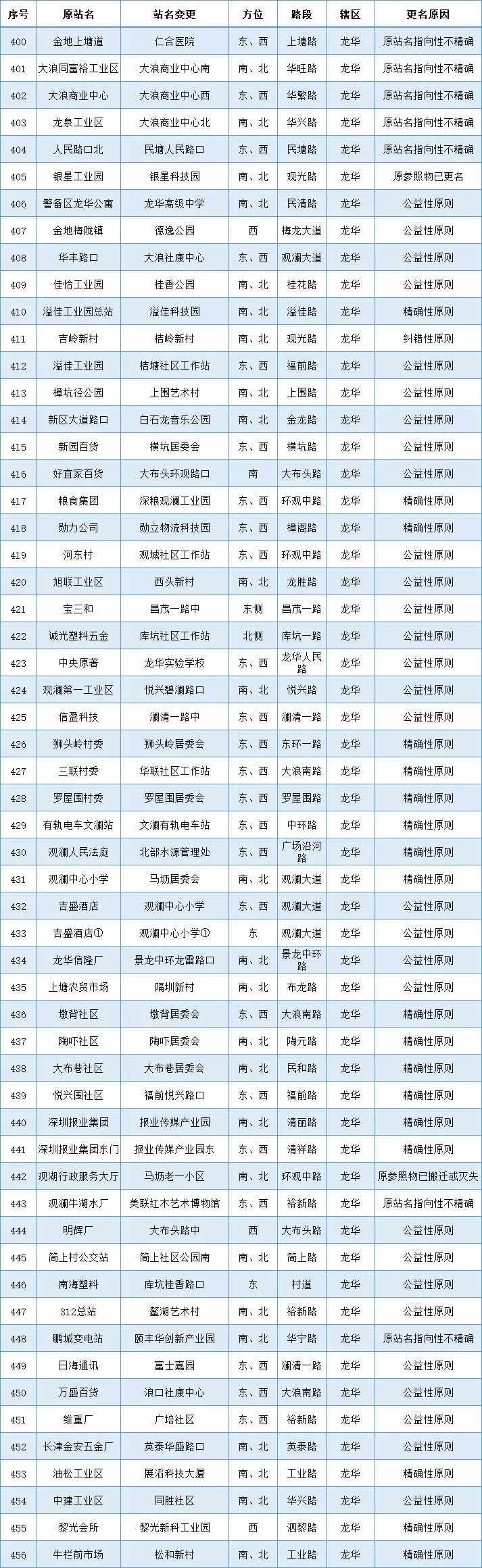 比如觀瀾第一工業(yè)區(qū)改為悅興碧瀾路口