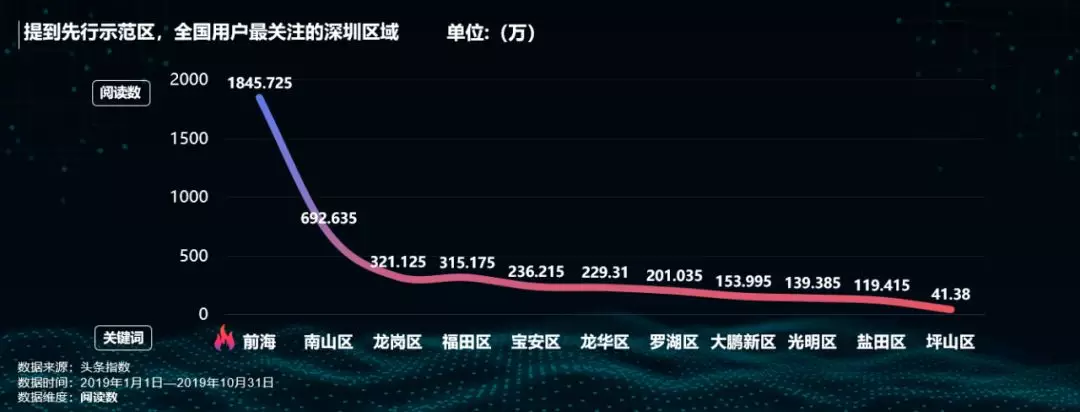 提到先行示范區(qū),全國(guó)網(wǎng)友最關(guān)注的深圳區(qū)域是前海和南山區(qū)。作為特區(qū)中的特區(qū),前海將奮力成為先行示范區(qū)核心引擎區(qū)域,關(guān)注度遙遙領(lǐng)先。而被譽(yù)為“中國(guó)硅谷”的南山,在科技大熱的今年,關(guān)注度僅次于前海。
