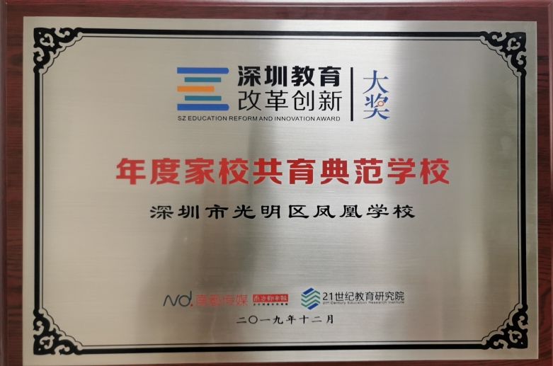 見(jiàn)圳客戶端、深圳新聞網(wǎng)2019年12月20日訊(記者 陳彬)2019年12月20日,第五屆深圳教育改革創(chuàng)新論壇在深圳大學(xué)科技樓隆重召開(kāi),論壇現(xiàn)場(chǎng)公布并頒發(fā)了各項(xiàng)深圳教育改革創(chuàng)新大獎(jiǎng),光明區(qū)鳳凰學(xué)校首次榮獲2019年深圳教育改革創(chuàng)新“年度家校共育典范學(xué)?!?!