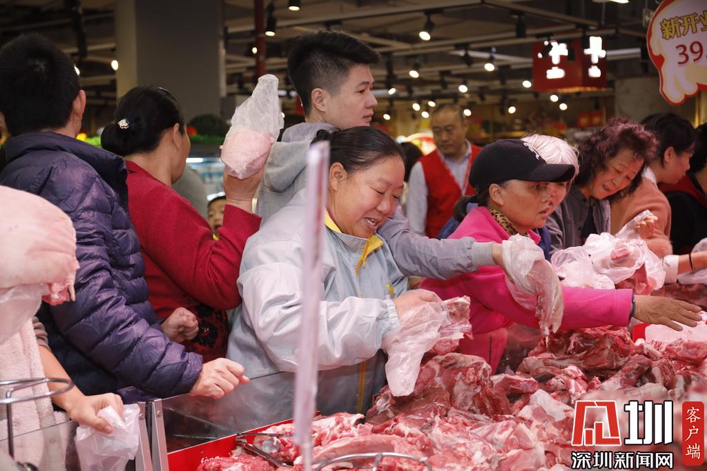 市民們選購豬肉。