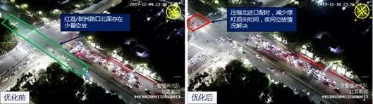 公明南環(huán)與金安路交叉口夜間信號燈優(yōu)化前后對比