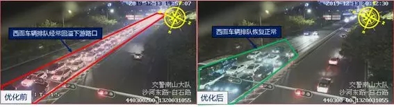 沙河?xùn)|/白石路口夜間信號燈優(yōu)化前后對比