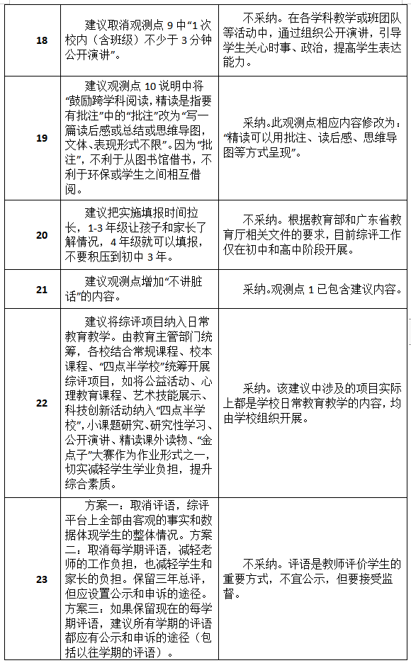 原標(biāo)題:最新進(jìn)展!深圳初中綜評新方案征集到34類建議,其中19類被采納或部分采納