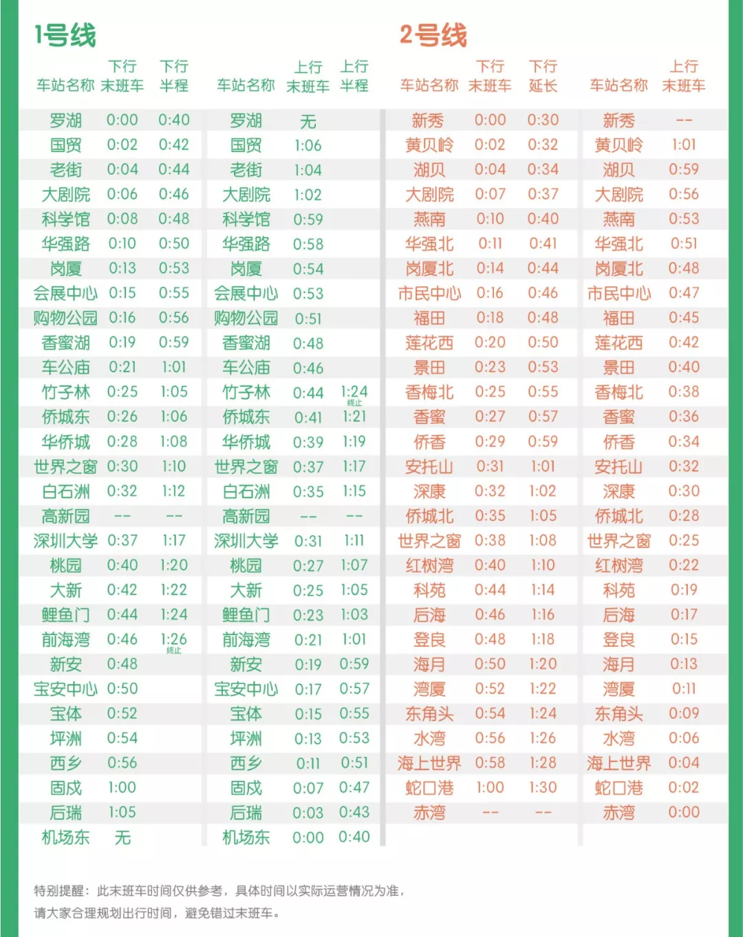 春運期間末班車時刻表