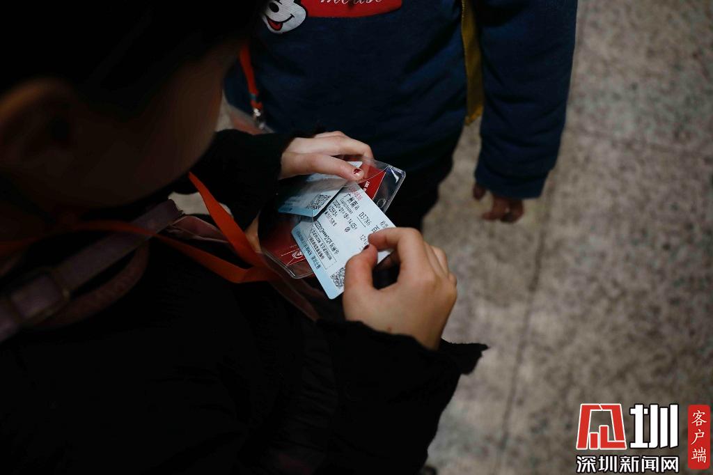一位乘客正在查看車票,今天前往廣西百色的列車,乘客們需要在廣州南站轉(zhuǎn)車。