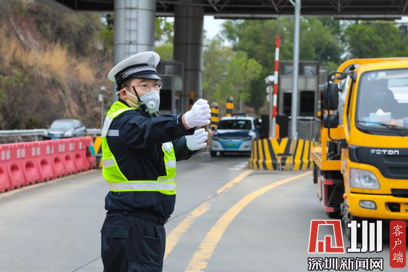 深圳交警在黃鶴收費(fèi)站指揮交通。