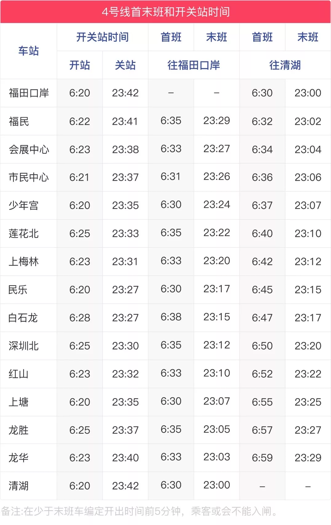 4號(hào)線(xiàn)運(yùn)營(yíng)時(shí)刻表