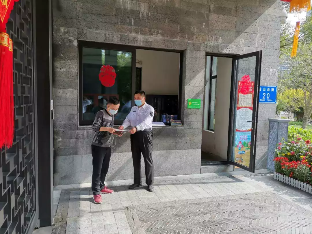 為有效的防范疫情傳播擴散,管家對所管轄區(qū)域進行逐戶排查、做好登記。
