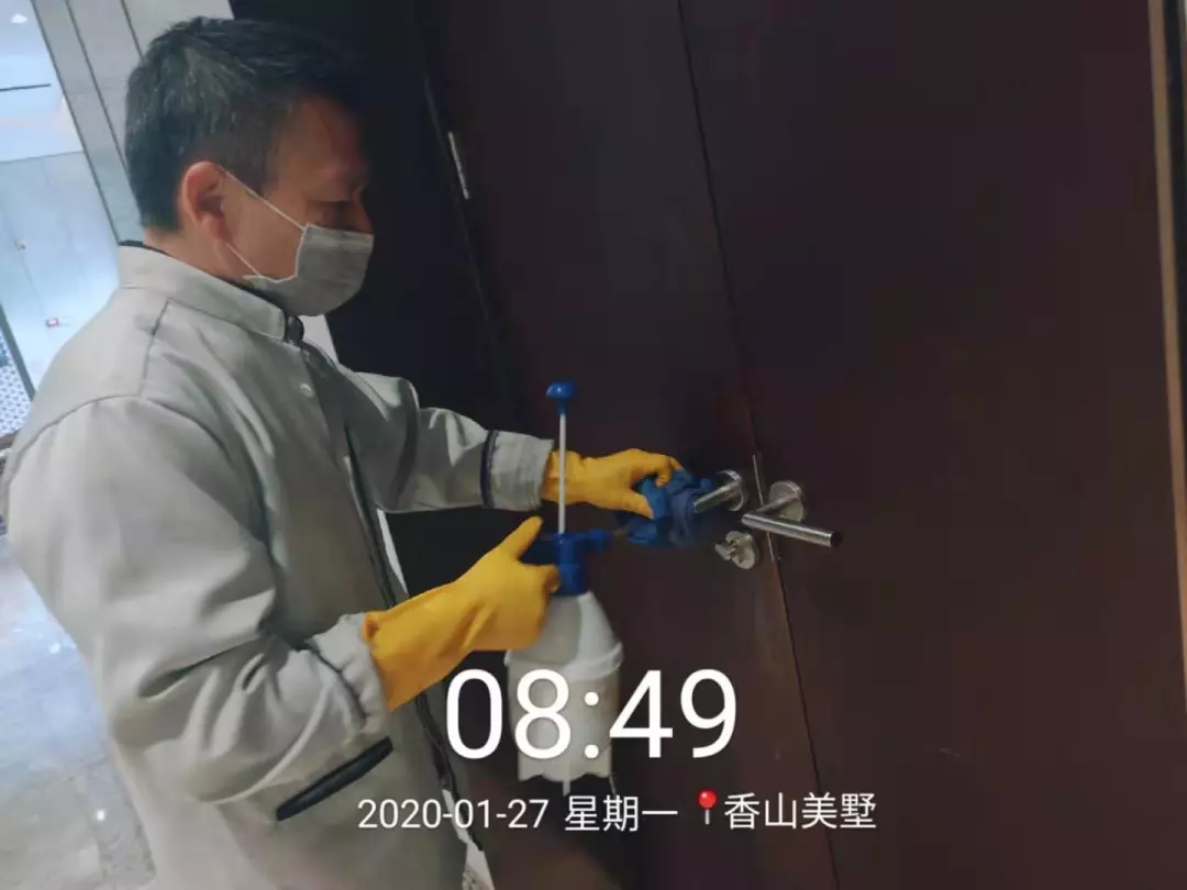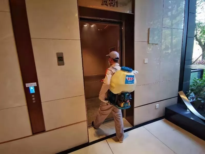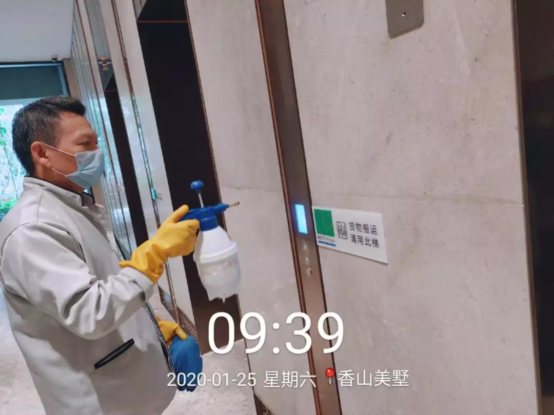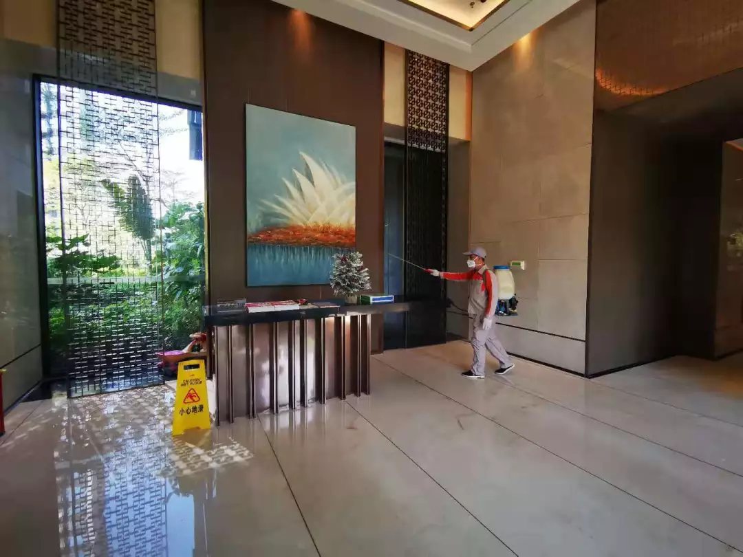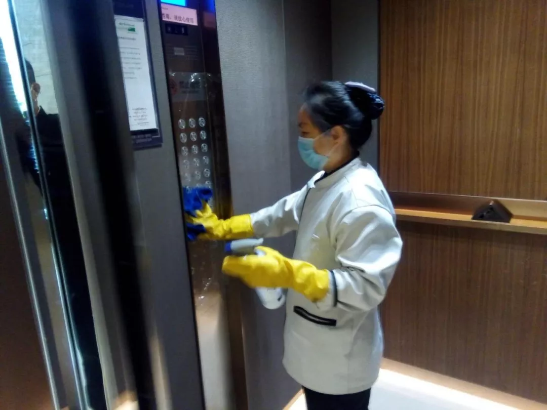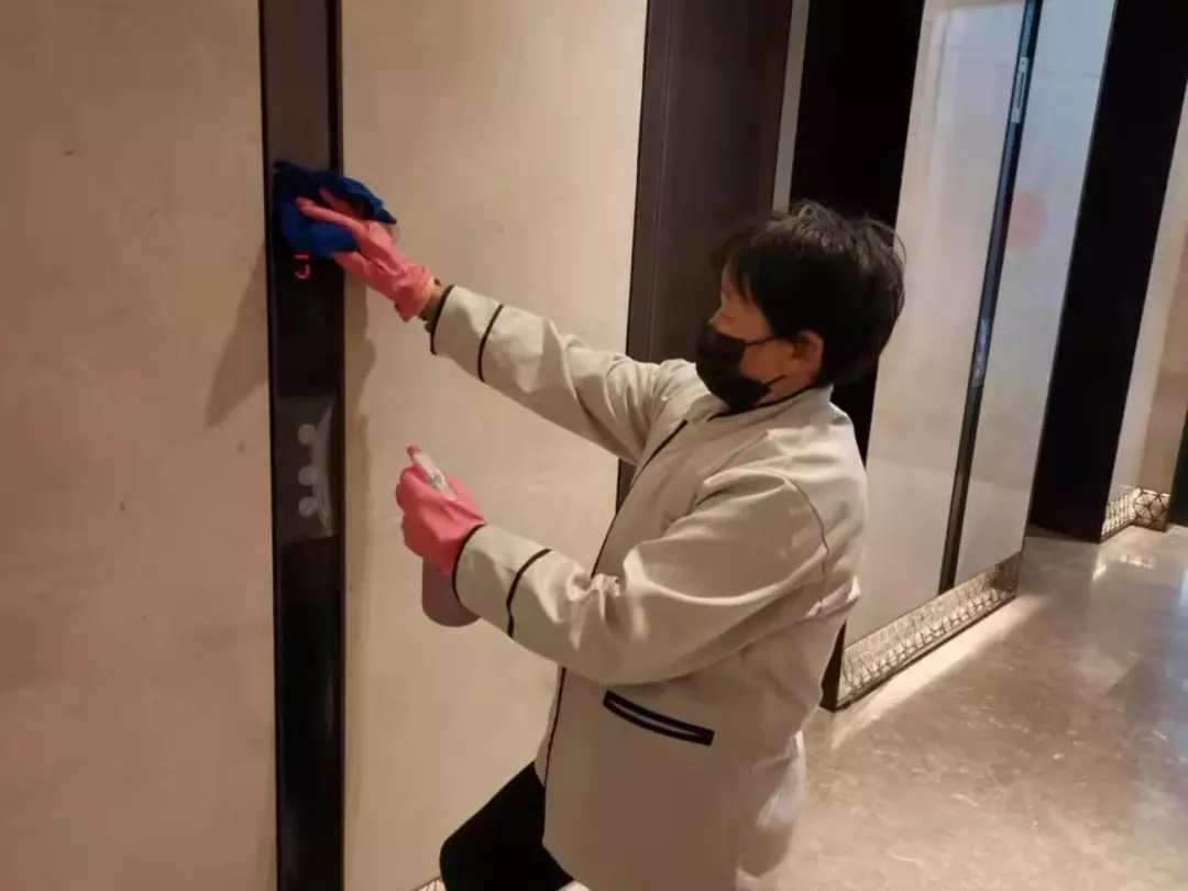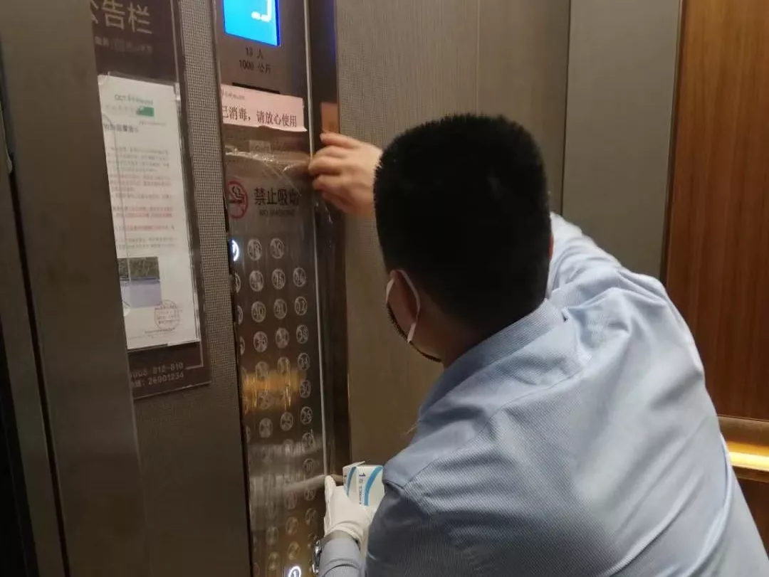 每天對小區(qū)公共區(qū)域大堂門把手、門禁對講機、電梯按鍵、大堂茶幾沙發(fā)等高頻接觸區(qū)進行消毒及對轎廂按鈕定時更換保鮮貼膜。