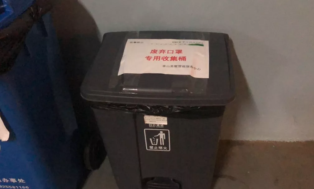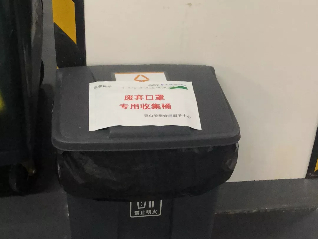 為防止廢棄口罩造成二次污染,管理服務(wù)中心在每棟樓宇垃圾集中收集點處,增設(shè)了“廢棄口罩專用收集桶”規(guī)范處理廢棄口罩;并要求工作人員每天對收集桶消毒加強防護。