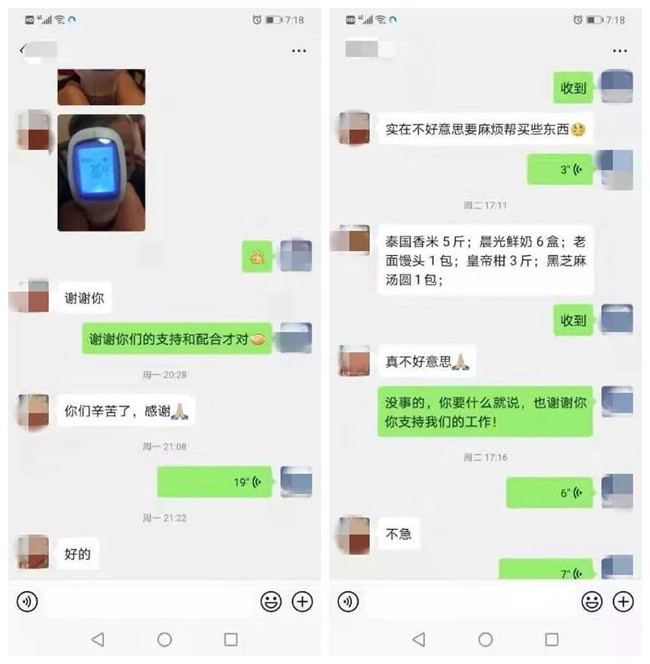 隔離期間正值新春佳節(jié),郭金發(fā)時刻牽掛一家人隔離后的生活,擔(dān)心因疫情對居民的生活帶來不便,心理上造成傷害。他要求社區(qū)積極落實(shí)該家庭生活物資后勤保障,前后4次為隔離家庭送去溫度計、中藥湯包、口罩等防護(hù)物資,還有新鮮蔬菜、水果、牛奶、饅頭、米、湯圓等生活物資。同時督促網(wǎng)格員每天通過電話或微信、視頻對該家庭3名成員進(jìn)行體溫監(jiān)測。郭金發(fā)每天都會主動電話聯(lián)系他們,問候一聲,閑聊幾句,及時掌握一家人的身體狀況,安撫他們緊張的情緒。所幸,目前這家人身體都很健康,情緒也很穩(wěn)定。老人的女兒告訴郭金發(fā),因?yàn)樯鐓^(qū)的努力,一家人的這個春節(jié)并沒有因疫情而過得艱難,工作人員的付出和關(guān)心他們都看在眼里,記在了心里。