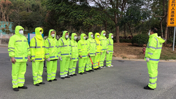 目前,燕羅街道各社區(qū)將庫存的防水材質(zhì)三防防護服全部送到一線,隊員們穿著時將袖口、脖口的鎖口扎緊,褲子選取大一碼的方便遮住腳面,同時佩戴護目鏡、口罩、一次性手套、一次性鞋套,對全身進(jìn)行包裹。換班時,利用配置好的消毒水全面噴淋,或是在消毒桶里浸泡不少于20分鐘,并在太陽下掛起晾曬。
