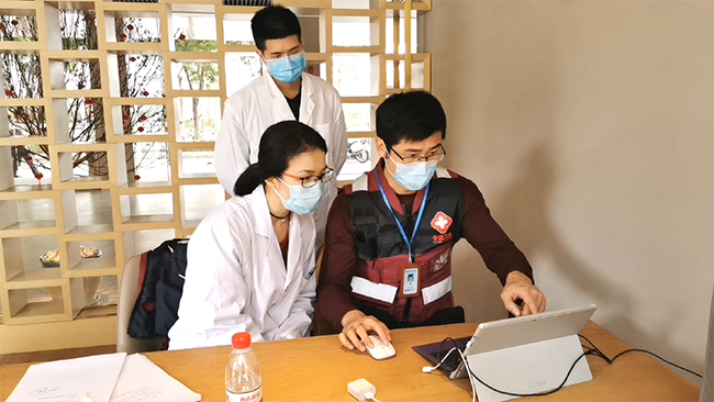 黃燕飛從春節(jié)前夕基本就扎在了辦公室,一扎就是十幾天,她和兒子、女兒和丈夫甚至在除夕夜也沒能一起吃個飯,只是在工作間隙一邊吃飯的時候一邊視頻一下。姑娘們眼中的“飛姐”不僅聰明能干,還是樂觀爽朗的“開心果”,她給大家打氣、講笑話,緩解別人工作中的壓力,只有疲累到恍惚的時候提起她的女兒才流露出心底的柔弱“一個多星期了,我抱女兒的時間還沒有5分鐘”。