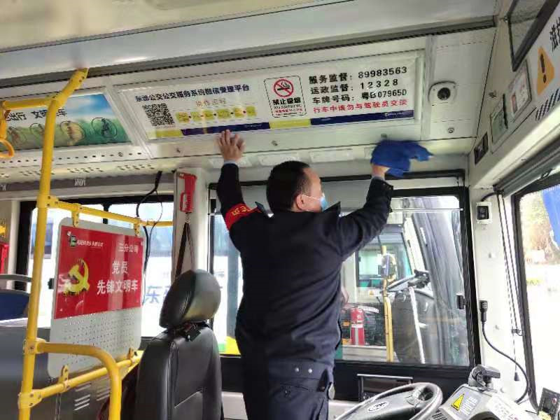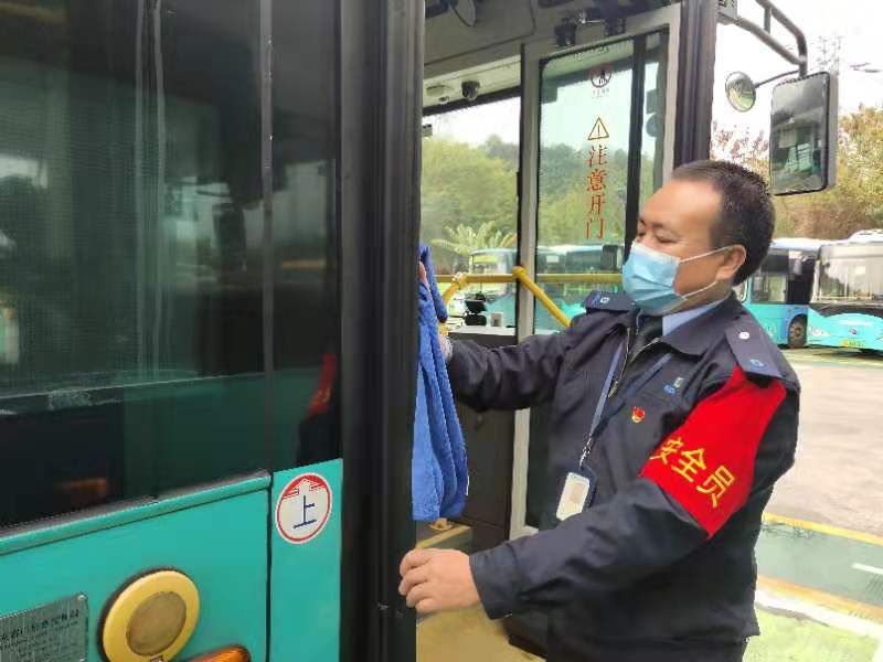 雖然每臺公交車出車前都要進(jìn)行清潔和消毒,但邱華還是有些不放心,他先把車上乘客容易觸碰到的扶手,用噴酒過消毒液的抹布再次抹了一遍,一切準(zhǔn)備妥當(dāng)后,才精神抖擻坐上自己的駕駛位。