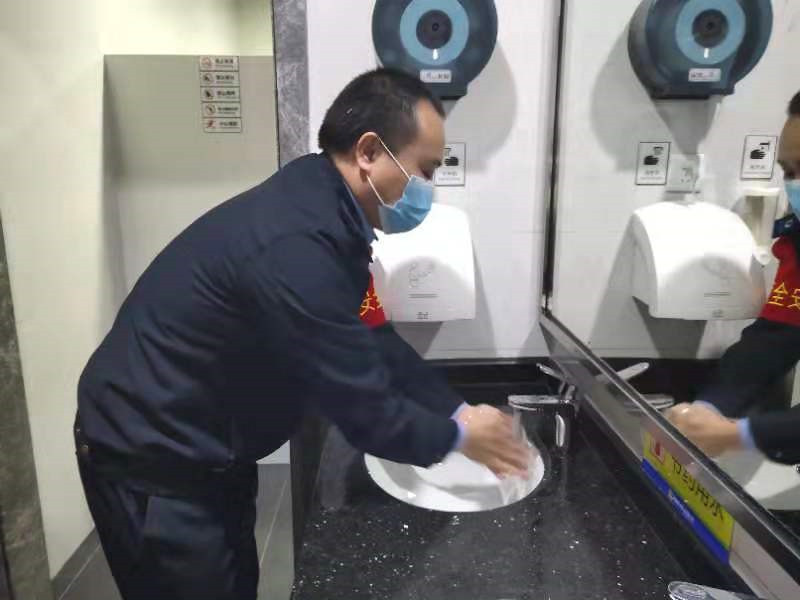 由于現(xiàn)在是肺炎疫情嚴(yán)重防控期間,按照車隊要求,邱華出車前先去洗手間把手洗干凈,然后接受問詢告知、酒精測試、測量體溫、配戴口罩等。