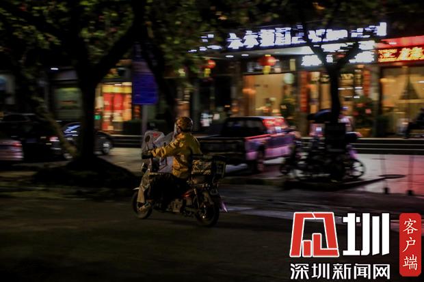 夜幕之下,鮮少行人走動(dòng),路上只見外賣、快遞小哥在奔忙。