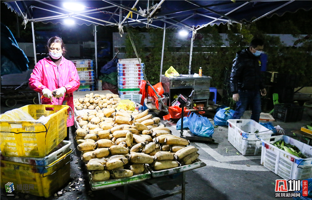 3時40分,來自江西的老張和他妻子就開始為他們經(jīng)營多年的蓮藕、玉米檔口忙活起來,客源主要還是一些老顧客。老張說,最近的農批市場管控的比以往嚴格了許多,不帶口罩或者體溫超標都不能進市場。