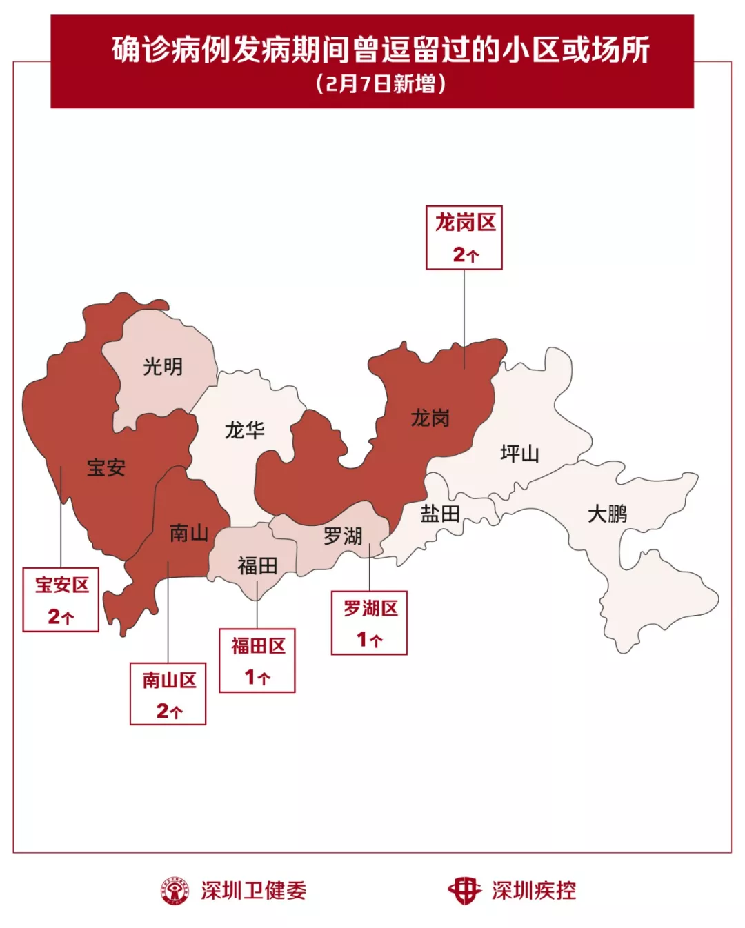 2月7日,疾控專業(yè)人員通過最新的流行病學(xué)調(diào)查確認(rèn),深圳新增8個小區(qū)(場所),有新確診的病人在出現(xiàn)病征期間曾經(jīng)逗留。