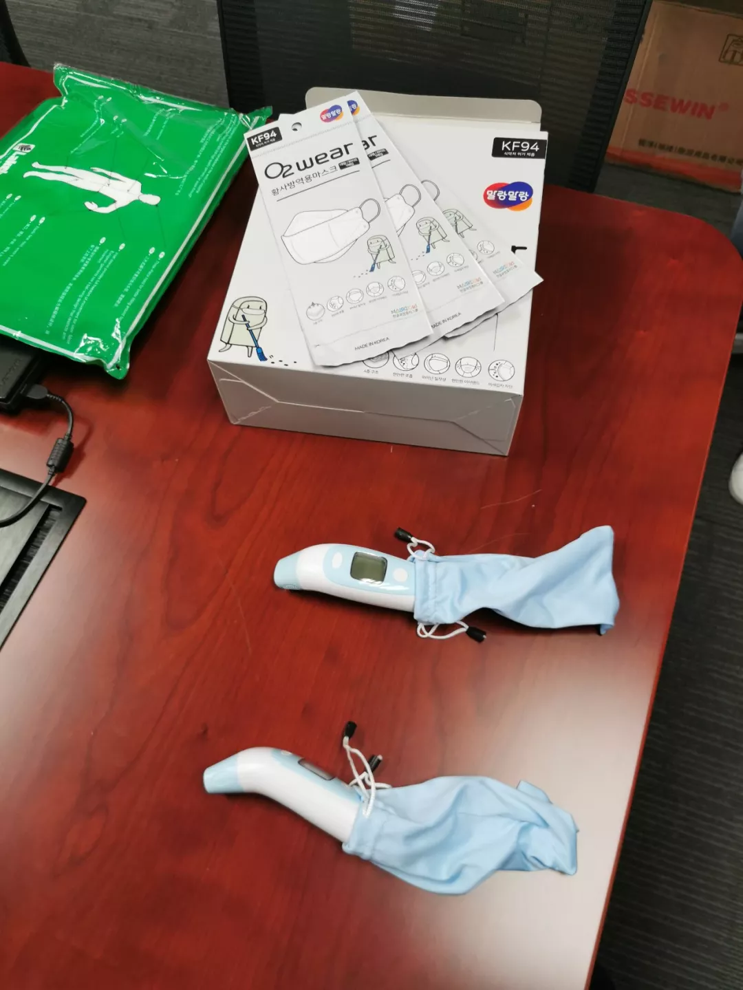 企業(yè)的口罩、測溫儀等防疫物資。新華社記者孫飛2月7日攝