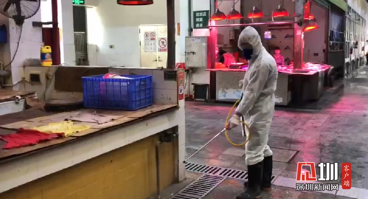 在現(xiàn)場,記者看到有2名消殺工作人員正在對市場的下水道進(jìn)行消殺清潔。“目前動檢所負(fù)責(zé)福田區(qū)31個農(nóng)批市場的消殺工作,我們從1月22號就開始對農(nóng)貿(mào)市場進(jìn)行消毒,每天消殺一次,消殺的濃度比之前有所增加,比平時多了一倍。消殺清潔工作對于疫情防控非常重要,效果也非常明顯?!眲訖z所工作人員說道。