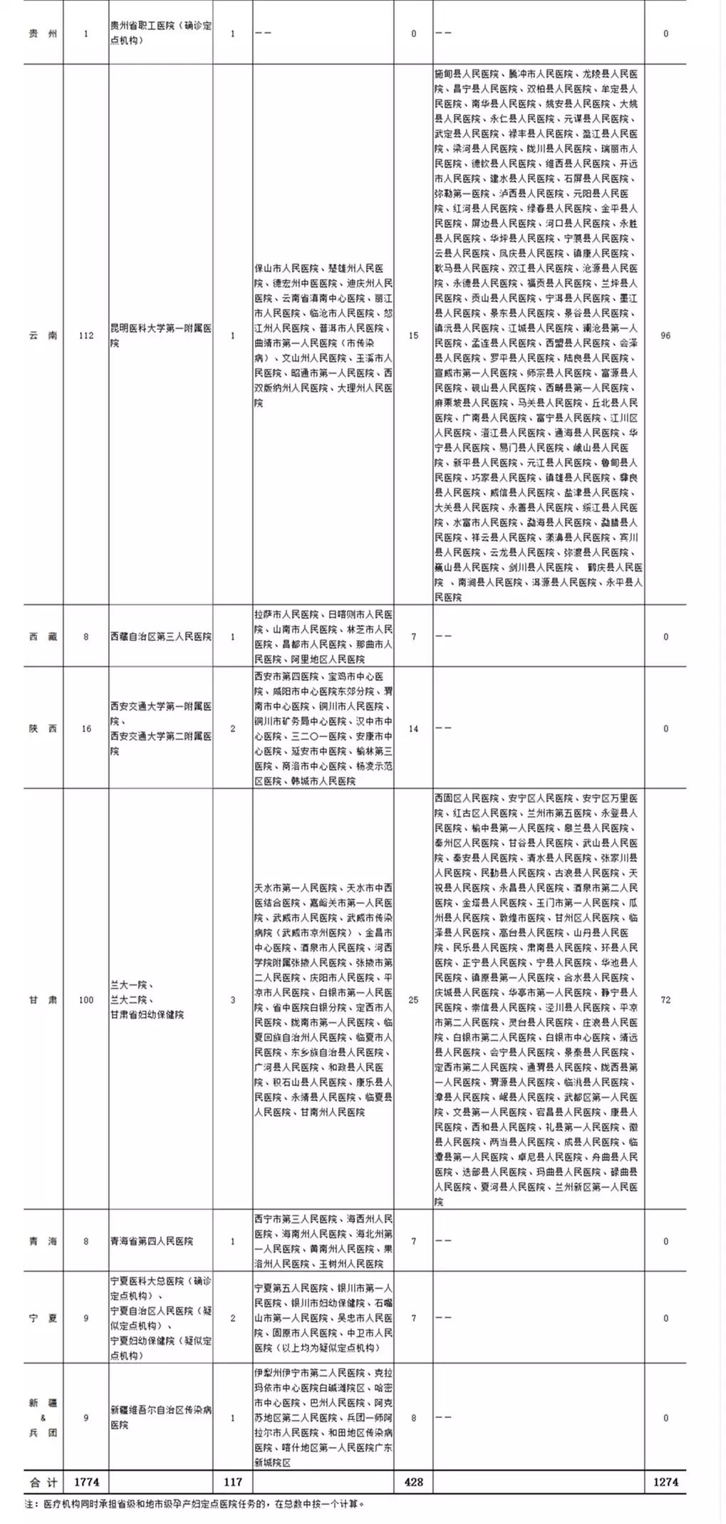各?。▍^(qū)、市)新型冠狀病毒感染疑似或確診孕產(chǎn)婦產(chǎn)檢和住院分娩定點(diǎn)醫(yī)院(截至2020年2月11日)